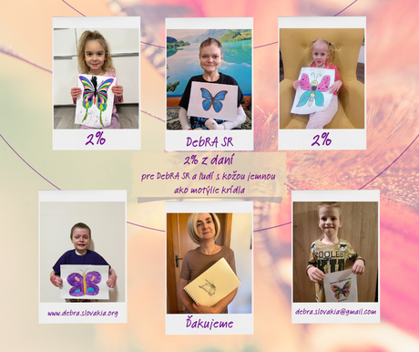 Podľa §50 zákona č. 595/2003 Z. z. o dani z príjmov v znení neskorších predpisov, ktorý vám umožňuje darovať 2% z vašich daní z príjmov, máte možnosť rozhodnúť sa o darovaní tejto čiastky po novom obom rodičom a zároveň i neziskovej organizácii, akou je aj naše OZ DebRA SR.